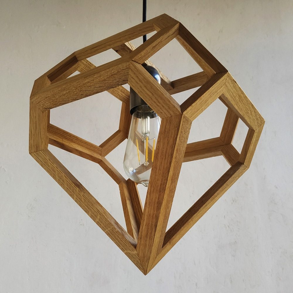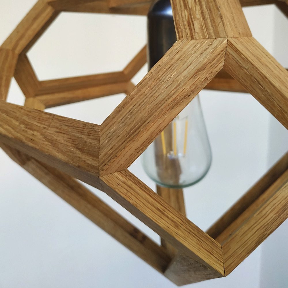 The new diamond lamp is a spin-off of the cedar pine cone lamp and was constructed from leftover material from another job. The striking resemblance to the shape of a diamond made us think that we should call this lamp Diamond but we chose to stick to the planets’s names. Available in oak, walnut and European elm. Contact us for other type of wood.