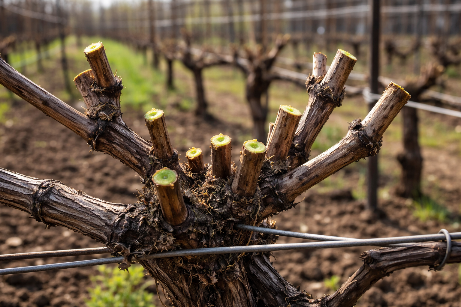 Una vite fruttifera sana ha un colore marrone uniforme, ha lo spessore di una normale matita e presenta gemme ben sviluppate e dense.