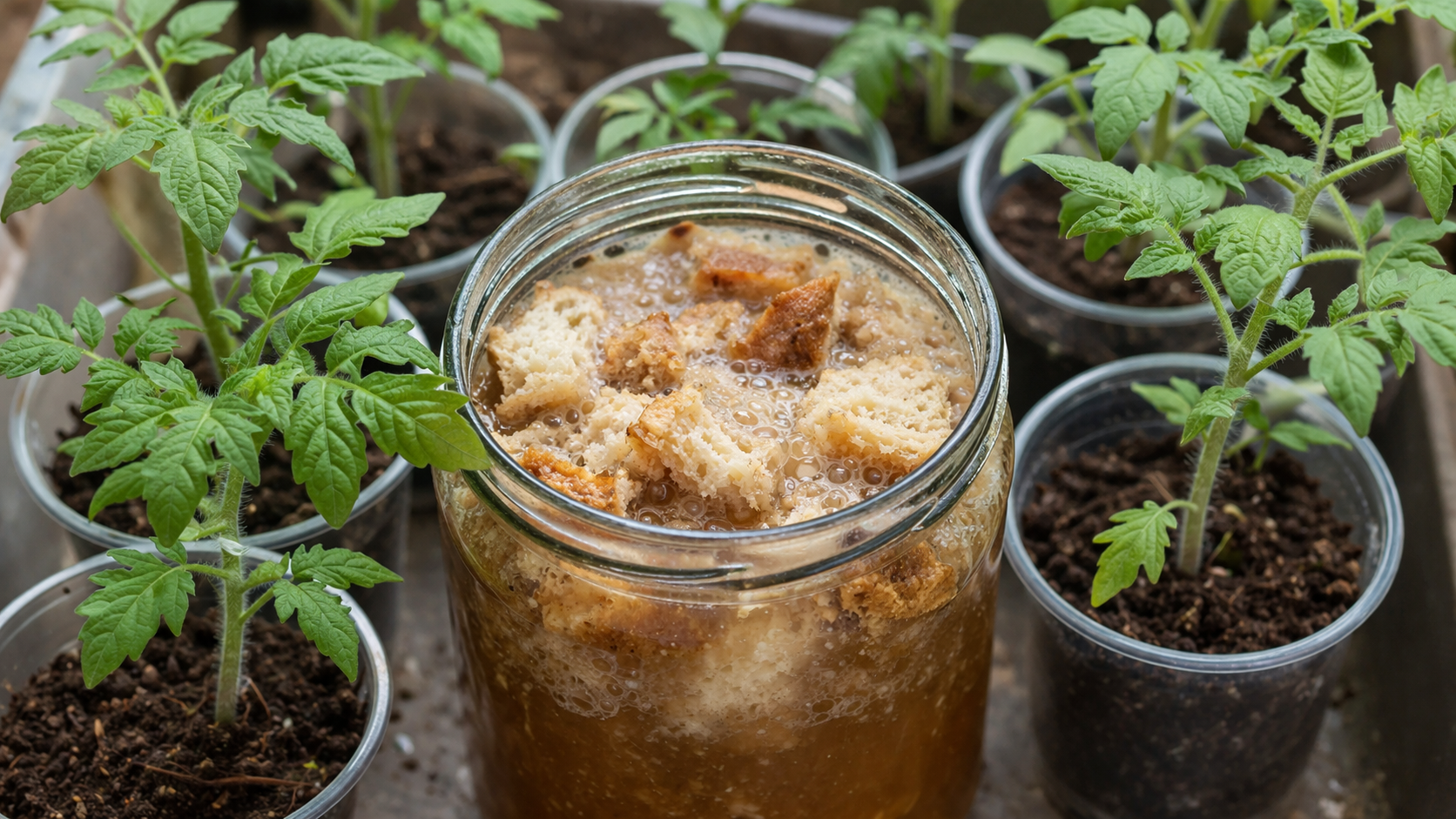 Una sfumatura segreta della pratica: utilizzate pane di segale, poiché contiene la massima quantità di batteri lattici, che stimolano l’immunità dei germogli in modo molto più efficace rispetto al pane di grano.