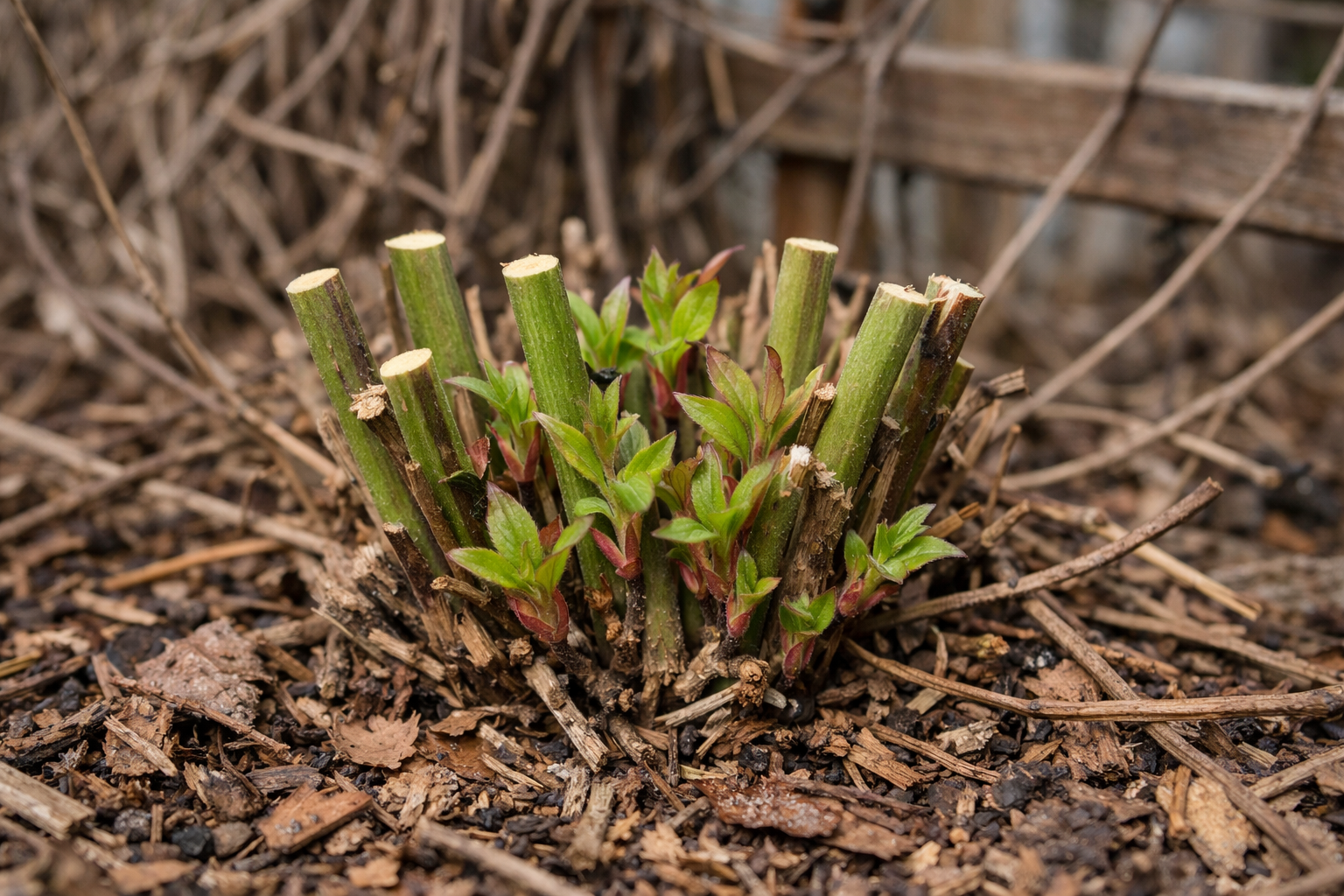 Tutte le parti congelate, secche e annerite degli steli devono essere tagliate senza pietà fino al primo germoglio verde sano.