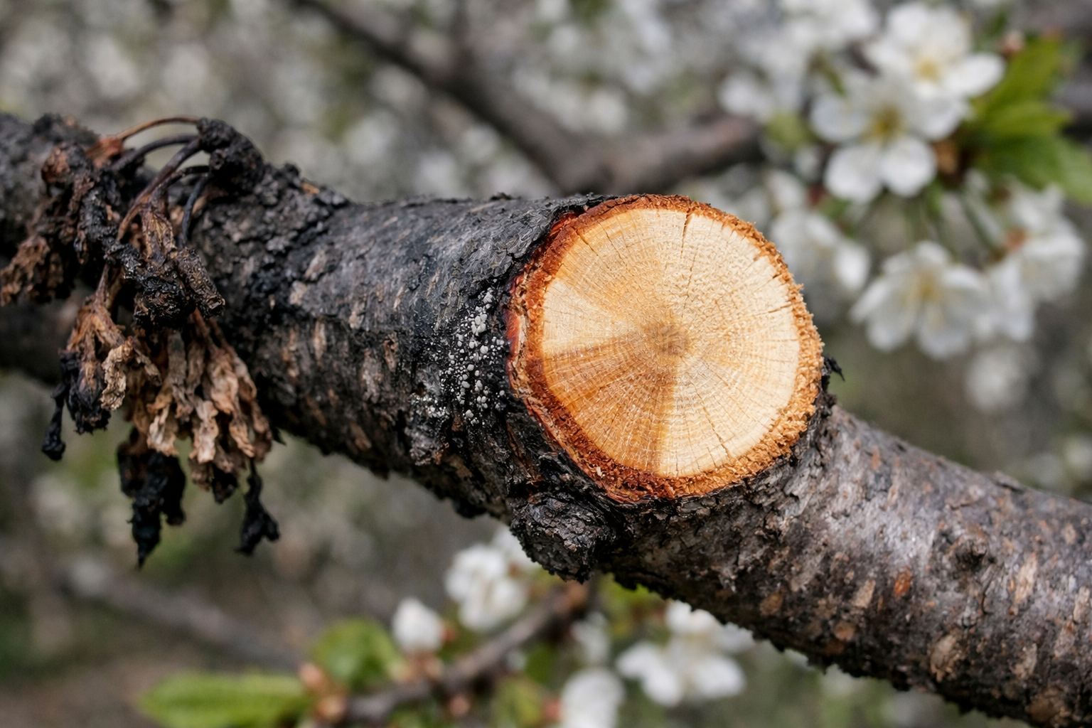 Il segreto principale per un controllo efficace sta nella potatura immediata. Non appena notate il primo rametto rattrappito, tagliatelo, prendendo almeno dieci centimetri di legno dall’aspetto perfettamente sano, altrimenti il fungo continuerà il suo cammino verso il tronco.