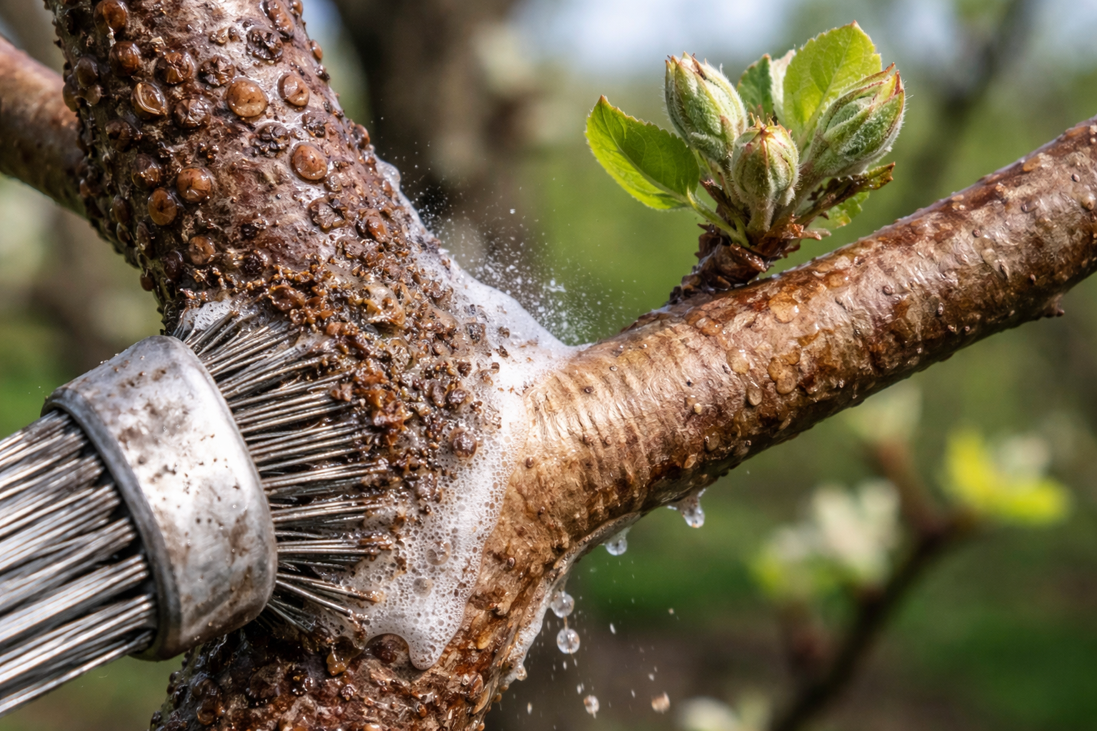 Molti giardinieri prendono subito lo spruzzatore, ma io preferisco un approccio globale. Questo è l’unico modo per garantire i risultati e risparmiare gemme dormienti sano.