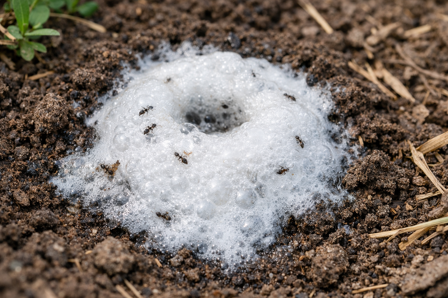 La principale sfumatura segreta del successo risiede nella violenta reazione chimica di questi due ingredienti proprio all’interno del formicaio. La schiuma sfrigolante non si limita a spaventare i parassiti, ma penetra istantaneamente nei passaggi profondi e raggiunge il luogo in cui si nascondono le formiche. formica compagna.