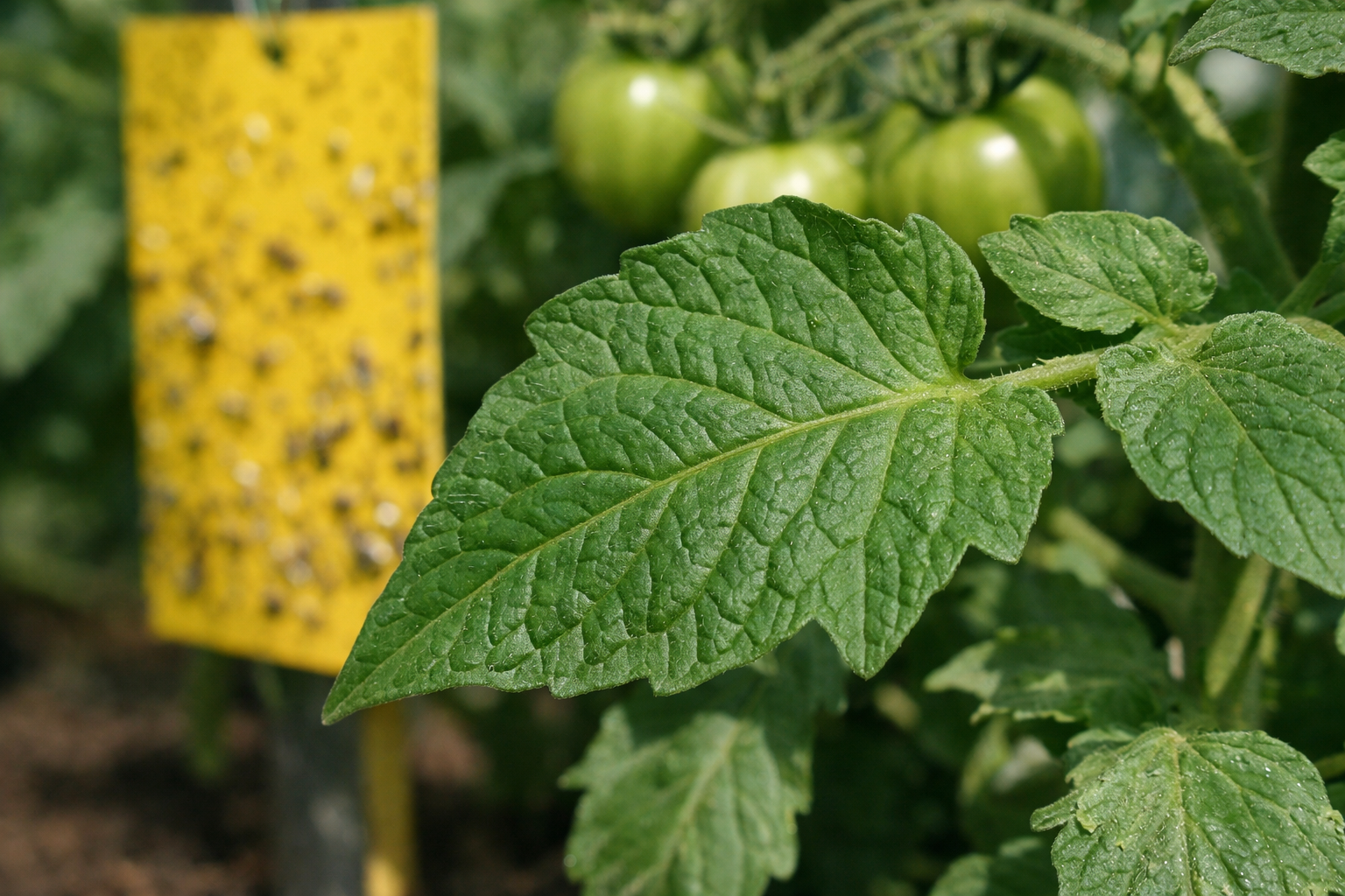 La prima cosa da fare è ridurre il numero di adulti. Le trappole a colla gialla sono ideali per questo scopo. Il colore brillante attira gli insetti e questi si attaccano alla superficie in modo permanente. Questo è il modo più semplice per interrompere il ciclo riproduttivo mentre il mosca bianca non ha deposto un nuovo gruppo di uova.