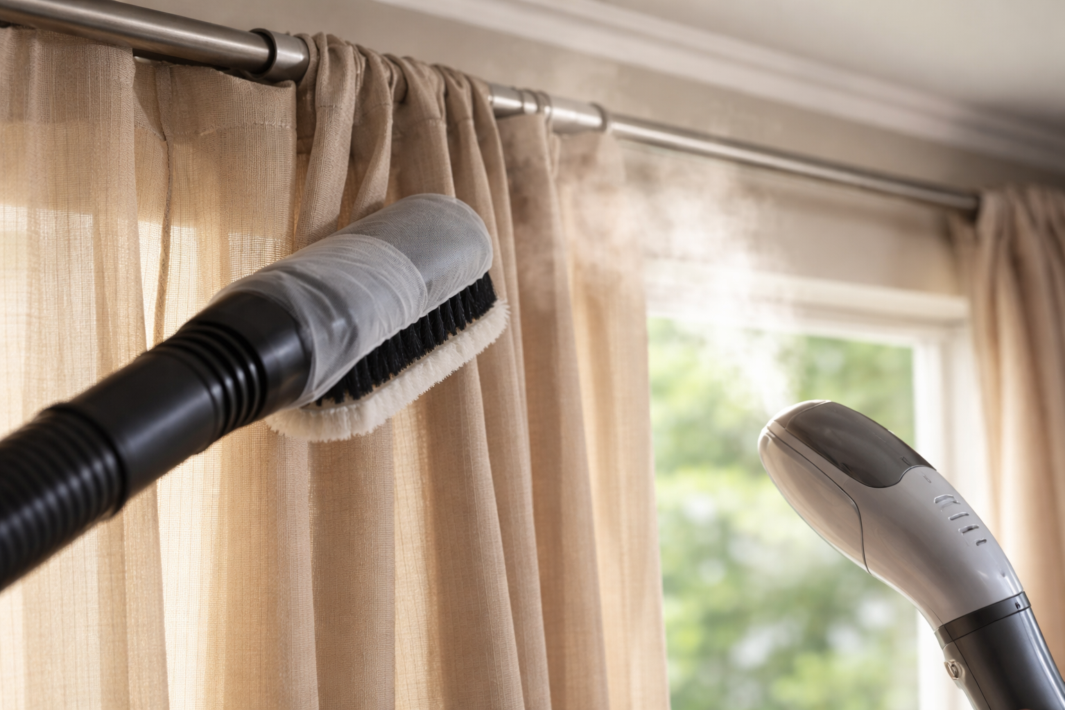 Prestare particolare attenzione alle pieghe profonde, ai tendaggi e al bordo superiore del bastone delle tende, dove si accumula la maggior parte della polvere.