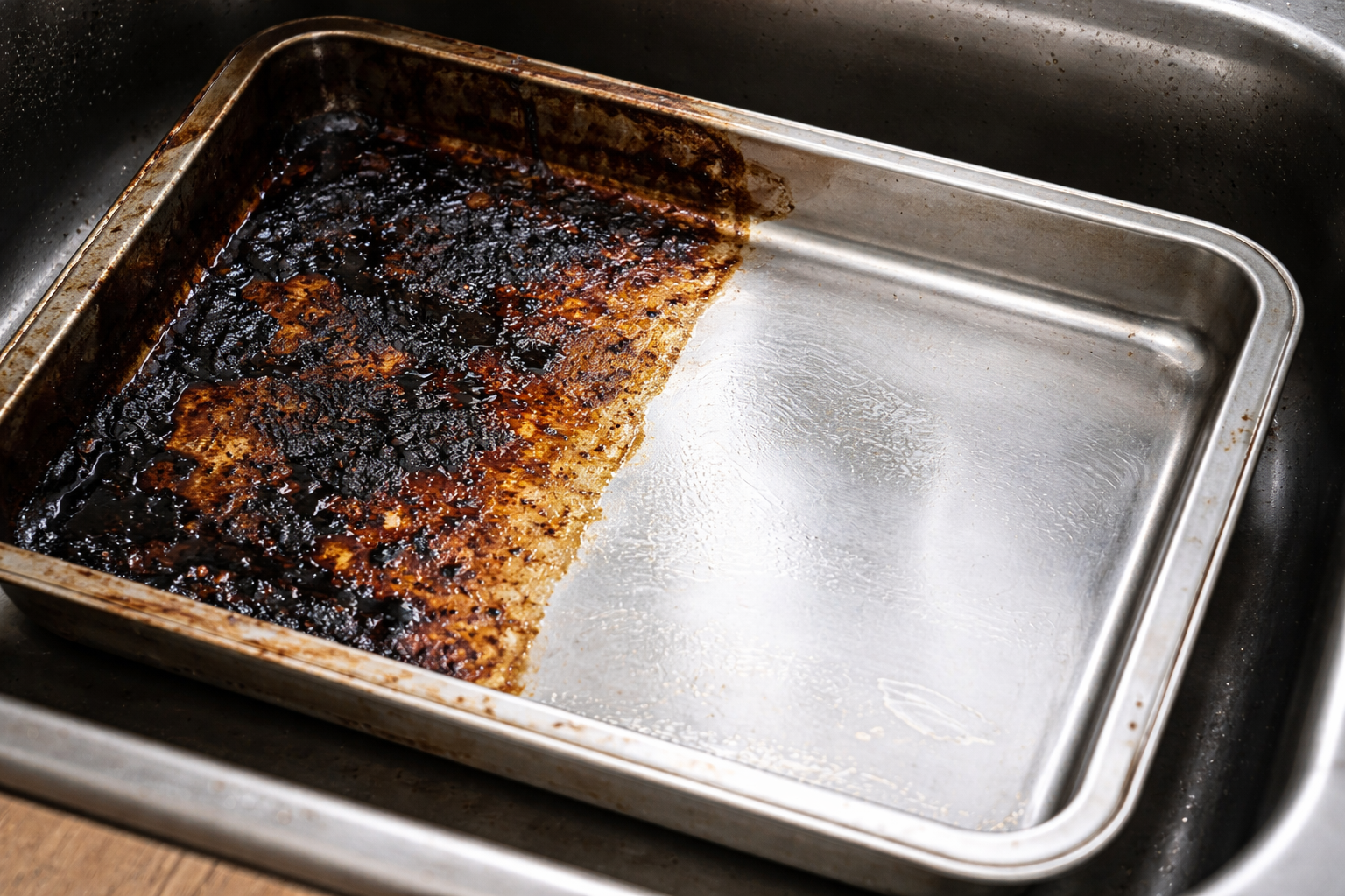 Il grasso secco e le croste nere su una teglia da forno spaventano molte persone, ma strofinarle via con una flanella di metallo è un errore che uccide lo strato antiaderente. Esiste un semplice trucco chimico, con rimedi casalinghi di base, che abbatterà la fuliggine più ostinata letteralmente sotto i vostri occhi.