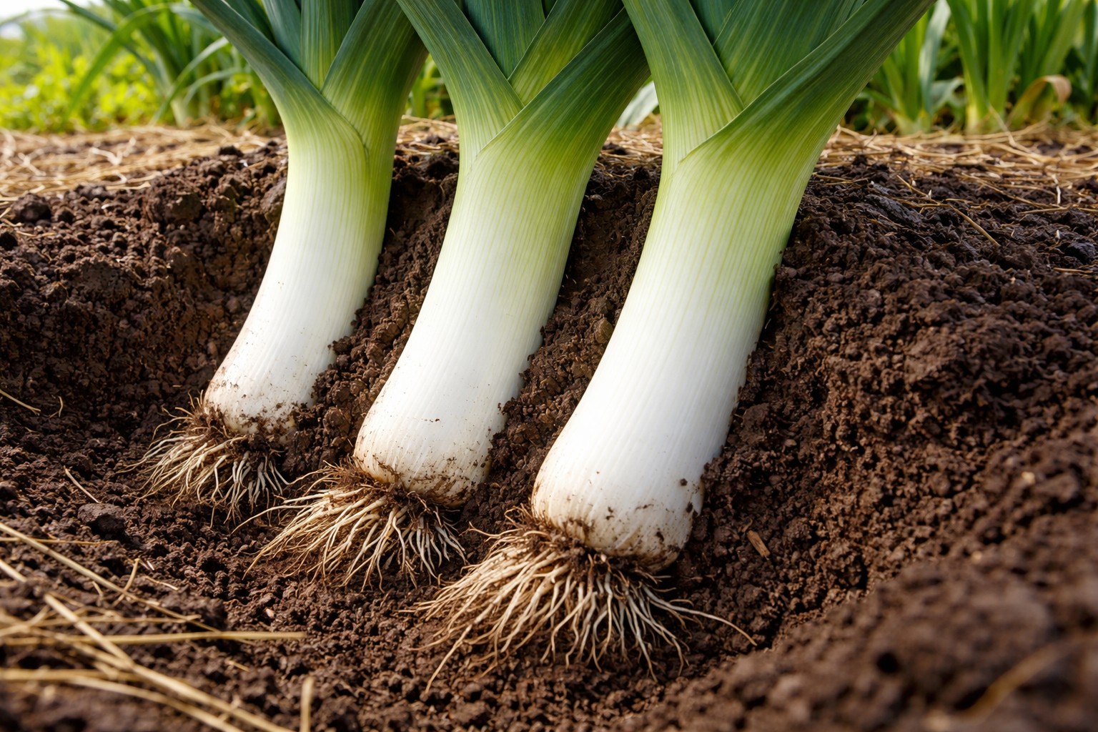 Per tutta l’estate, reintegrare gradualmente il terriccio nella trincea man mano che il fusto cresce: è questo costante arroccamento il responsabile di un buon imbiancamento del porro.
