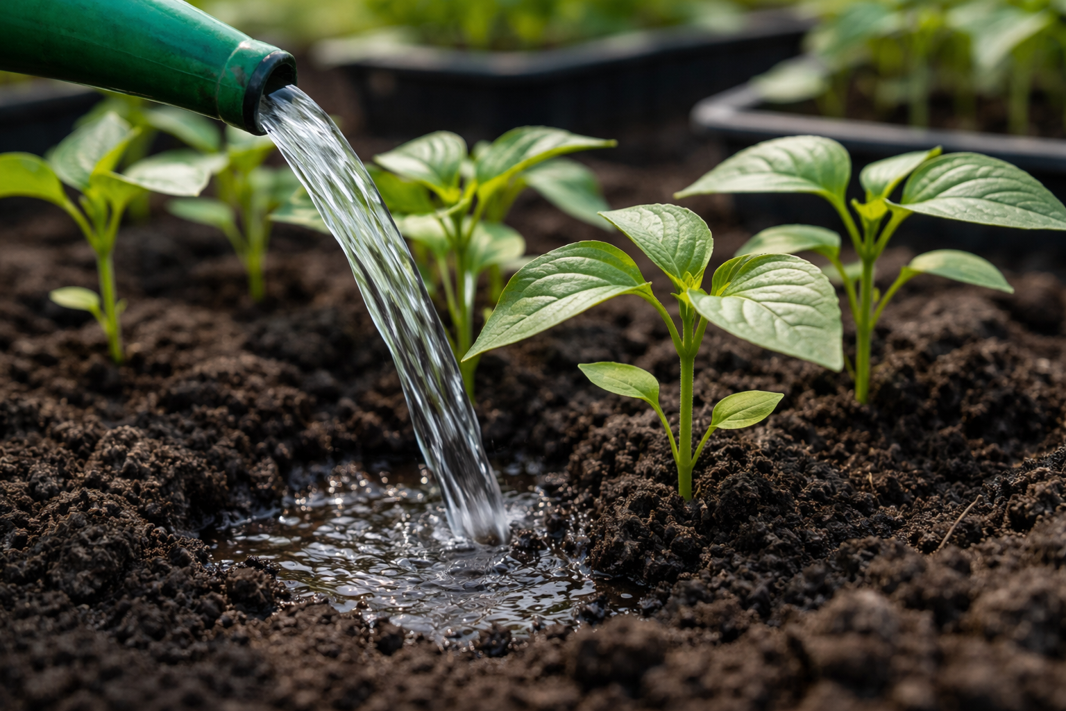 Non forzate mai l’irrigazione con un tubo, perché erode immediatamente il terreno e mette a nudo le tenere radici delle giovani piantine.