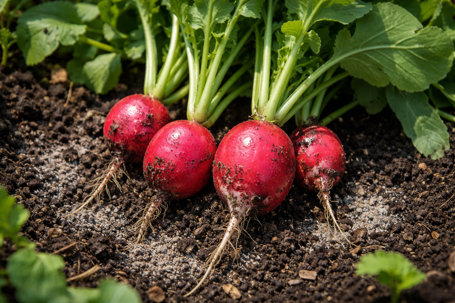 I ravanelli amano i terreni sciolti. Al posto del concime minerale, uso del normale concime cenere di legno. Non solo nutre la pianta con potassio e fosforo, ma disossida anche il terreno, fattore critico per questa coltura.
