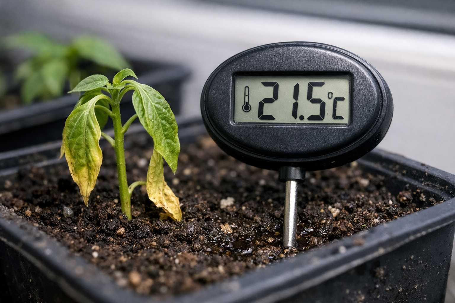 Il segreto principale per salvare i peperoni è controllare la temperatura del terreno, non solo dell’aria. Se la stanza è calda, ma il vaso poggia su plastica ghiacciata, le radici smettono di assorbire l’acqua e la pianta appassisce per la sete anche in un terreno umido.