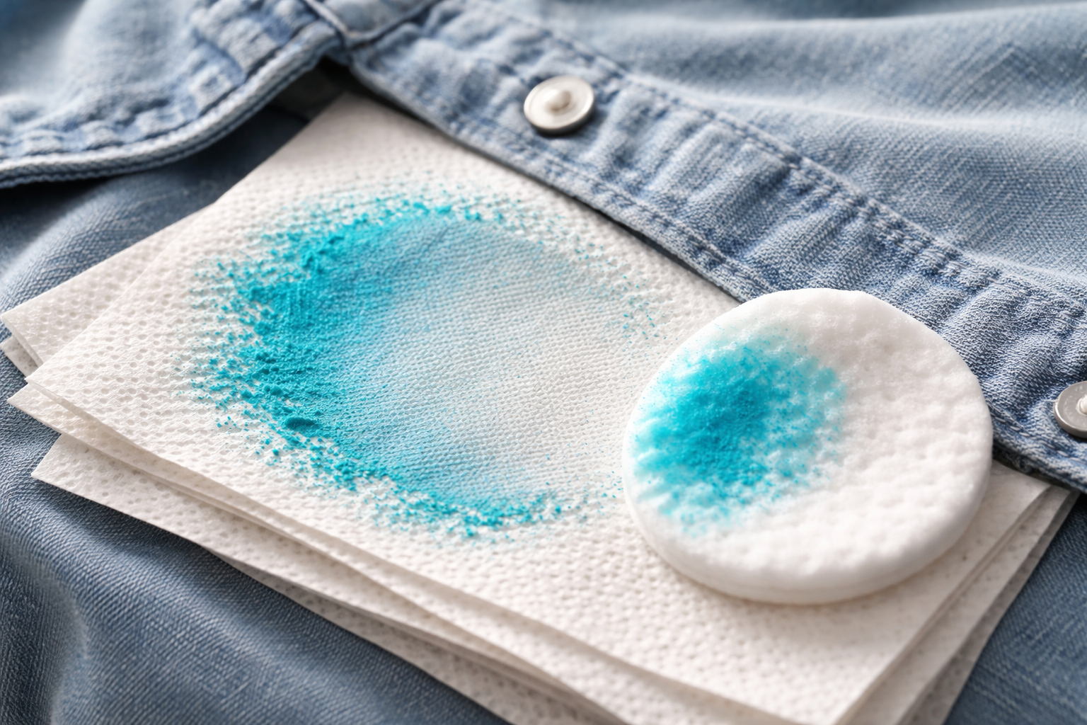 Un attrito meccanico aggressivo non fa altro che spingere le particelle colorate più in profondità nella struttura del tessuto, quindi è meglio usare movimenti delicati per tamponare.
