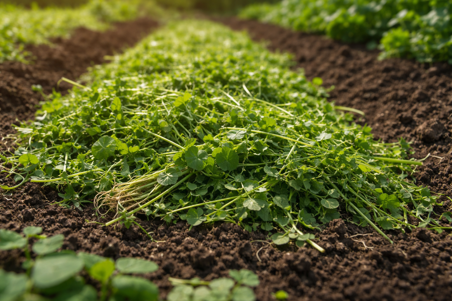 È sufficiente tagliare leggermente le radici con un aratro a una profondità di un paio di centimetri e lasciare che il verde si decomponga direttamente sulla superficie del letto.