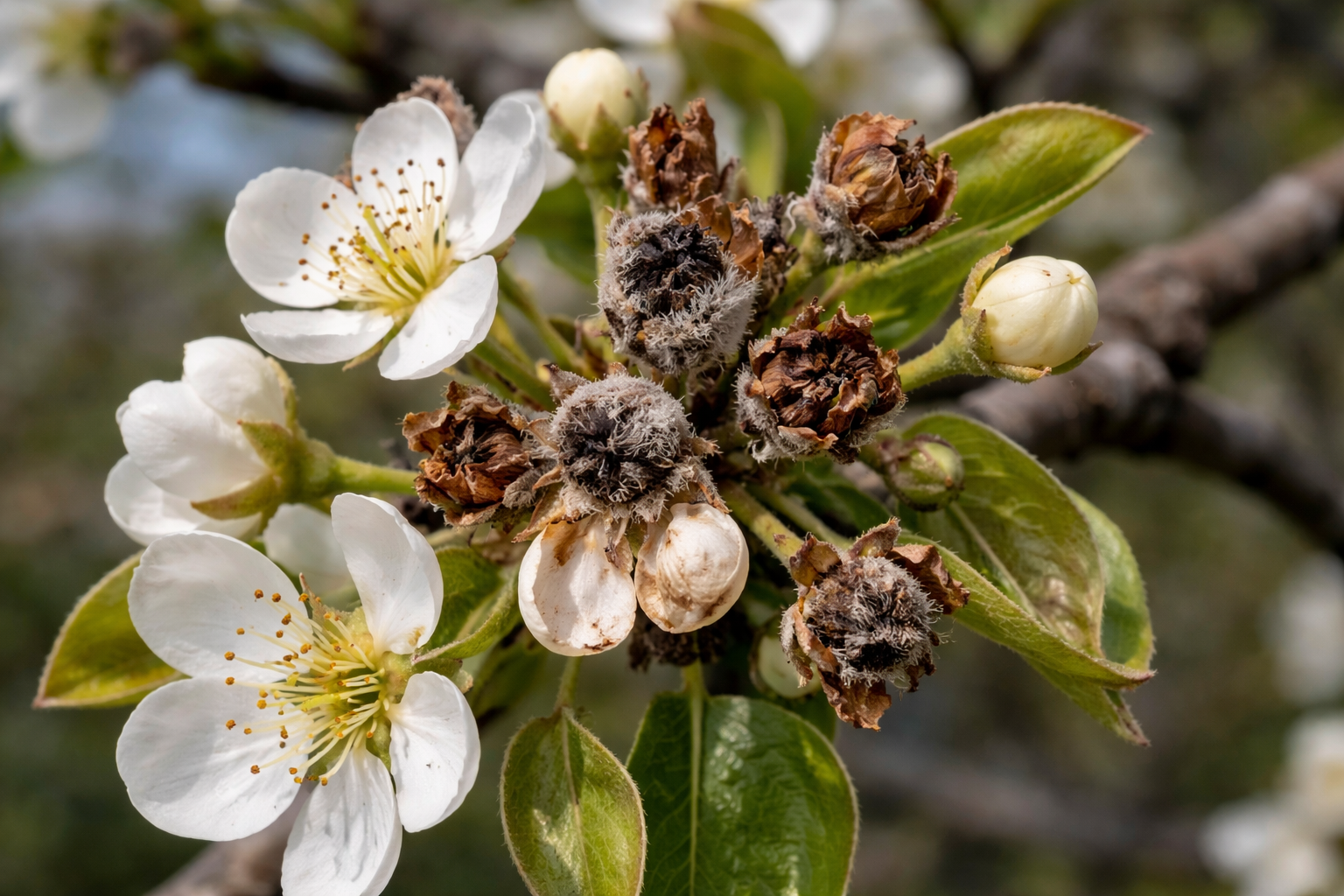 Perché i fiori di pera diventano improvvisamente marroni e si seccano?