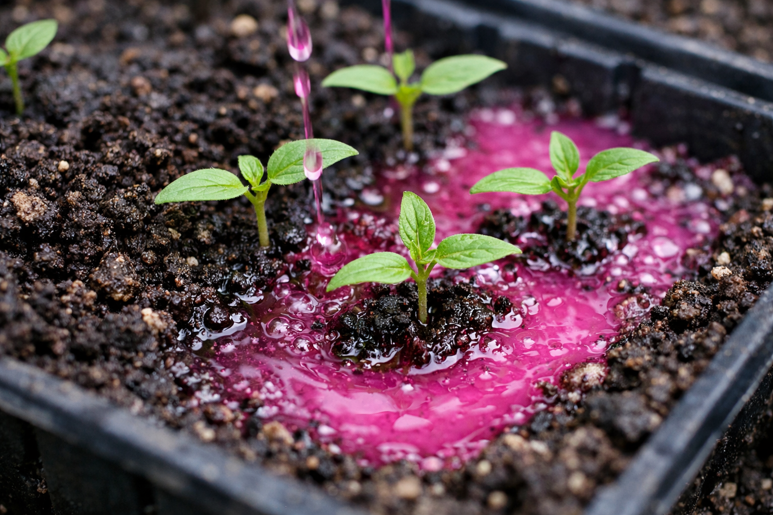 Non annaffiare mai il terreno asciutto con manganese concentrato, perché questo porterà inevitabilmente alla bruciatura chimica irreversibile dei peli delle radici.