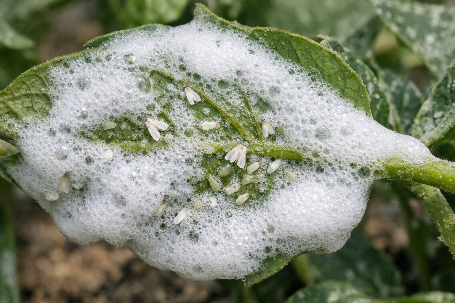 Con una spugna, applicare abbondantemente la schiuma sulle aree interessate della pianta.