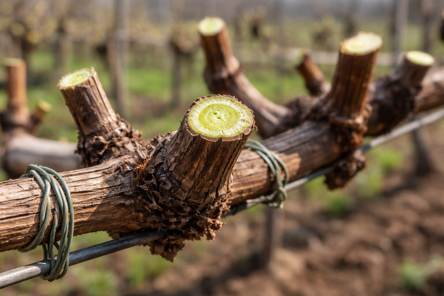 Il segreto principale dei maestri esperti è quello di identificare correttamente il legno morto e quello vivo a occhio dal colore del taglio, che in un tralcio sano dovrebbe essere verde tenero.