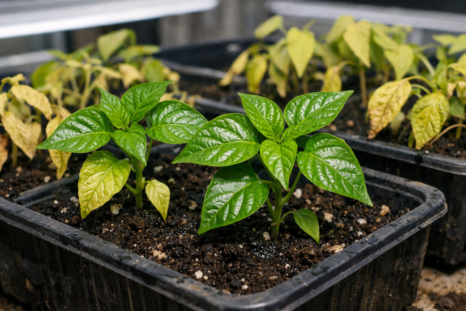 La prima regola per rianimare le piantine pallide è stabilizzare il microclima. Molti giardinieri commettono l’errore di cercare di “nutrire” il peperone ingiallito con fertilizzanti azotati. In assenza di luce, l’apparato radicale non è in grado di assorbire questi elementi e ciò porta alla salinizzazione del terreno.