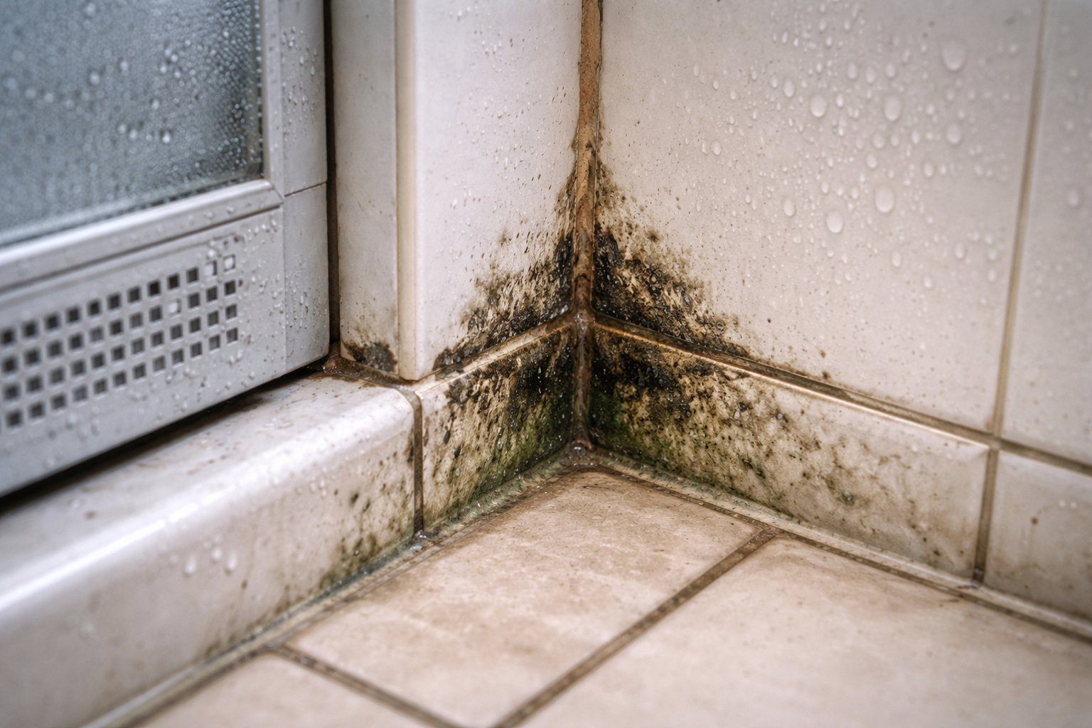 L’umidità è un terreno di coltura ideale per i microrganismi. Le spore fungine fluttuano nell’aria, si depositano sulle superfici umide e iniziano a crescere attivamente, penetrando nelle fughe e nei sigillanti.