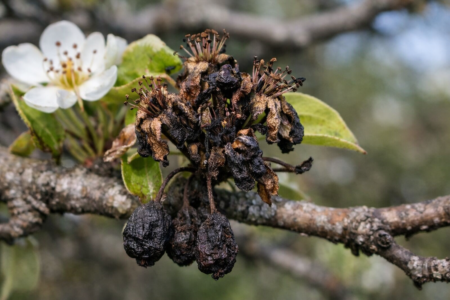 È possibile salvare l’albero se si tagliano immediatamente le aree colpite con 15-20 cm di tessuto sano e si effettua un trattamento d’urto con antibiotici o rame.