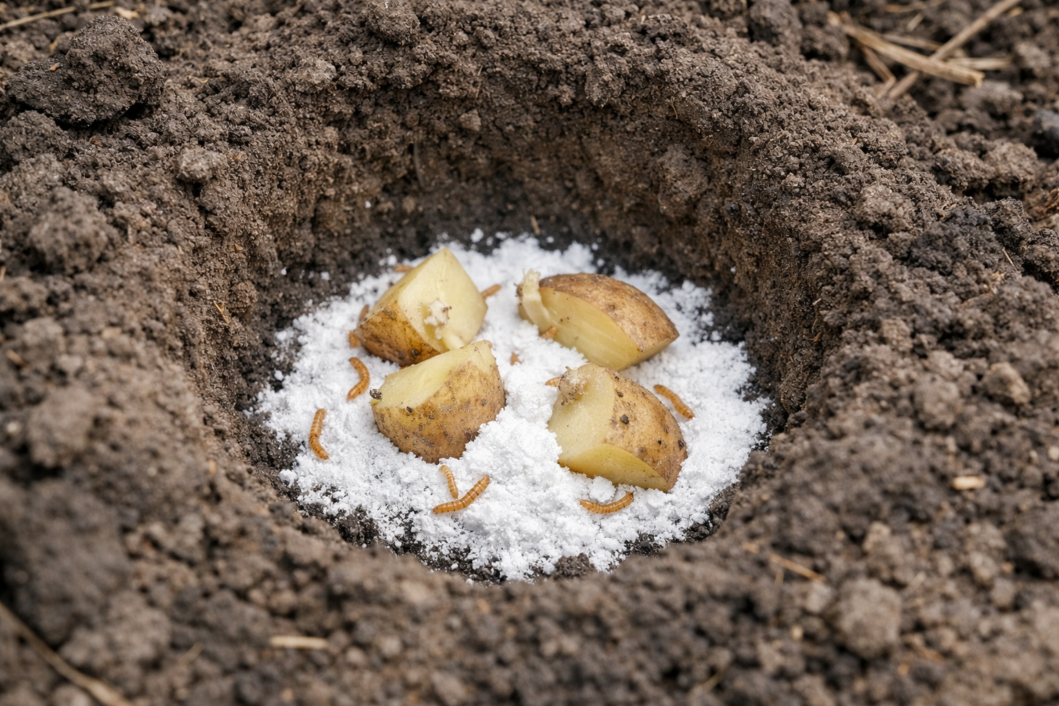 Assicuratevi di mescolare leggermente la polvere al terreno, in modo che non venga a contatto diretto con il tubero.