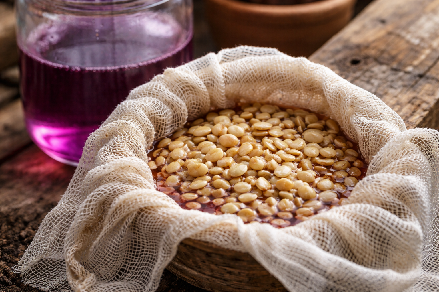 Immergere il sacchetto di garza con i semi in un sacchetto di garza appena preparato. soluzione di manganese