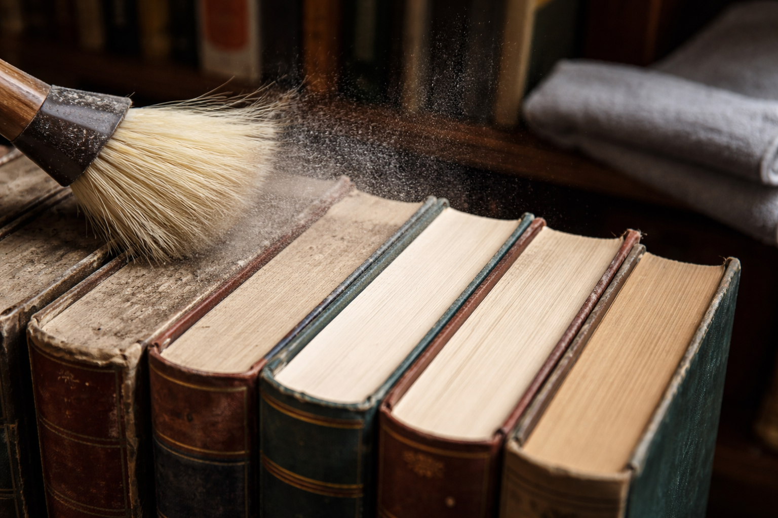 Gli scaffali dei libri attirano un’enorme quantità di polvere, trasformandosi da motivo di orgoglio a fonte di allergie e cattivi odori. Nel corso degli anni di lavoro con archivi privati, ho trovato alcuni metodi collaudati per rendere rapidamente perfetti i dorsi e le copertine, senza dover ricorrere a prodotti chimici aggressivi.