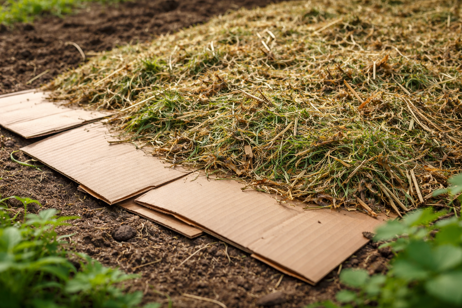 Stendete dei fogli di cartone ondulato ordinario senza nastro adesivo sulla zona infestata.