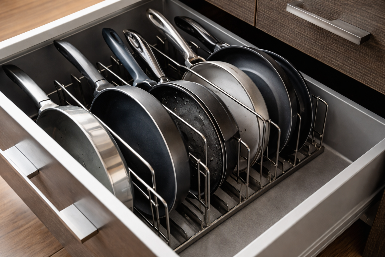 Ogni volta che cercate di estrarre la padella giusta dalla pila, la vostra cucina si riempie di rumore e gli utensili costosi rimangono con segni di sfregamento. È possibile mantenere gli armadietti in perfetto ordine e proteggere il rivestimento antiaderente senza acquistare sistemi complessi, utilizzando semplici principi ergonomici e metodi collaudati per separare gli oggetti.
