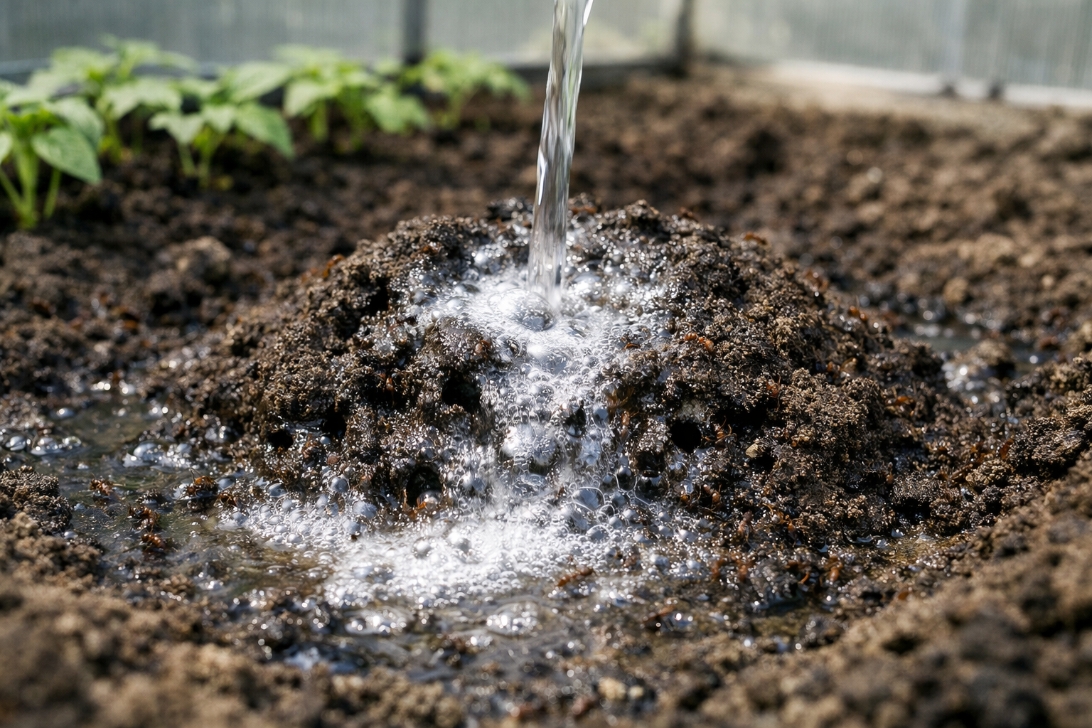 “Non versate mai acqua bollente su un formicaio direttamente sotto i cespugli di pomodoro, perché in questo modo le radici delle piante si lessano immediatamente e le piantine muoiono”.