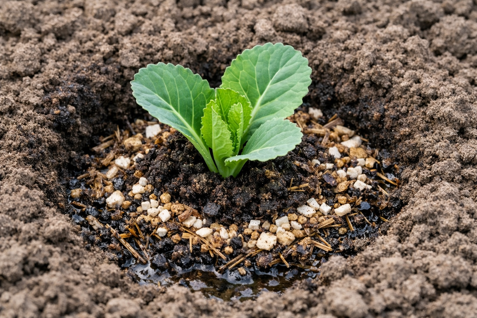 Il terreno per le nostre colture deve essere nutriente e in grado di trattenere l’umidità. Piantine di cavolo è molto esigente per quanto riguarda la struttura del terreno. Preparo sempre le aiuole in anticipo, in modo che il terreno abbia il tempo di assestarsi e strutturarsi. È importante creare il giusto equilibrio di sostanze nutritive anche prima di piantare le giovani piante in piena terra.