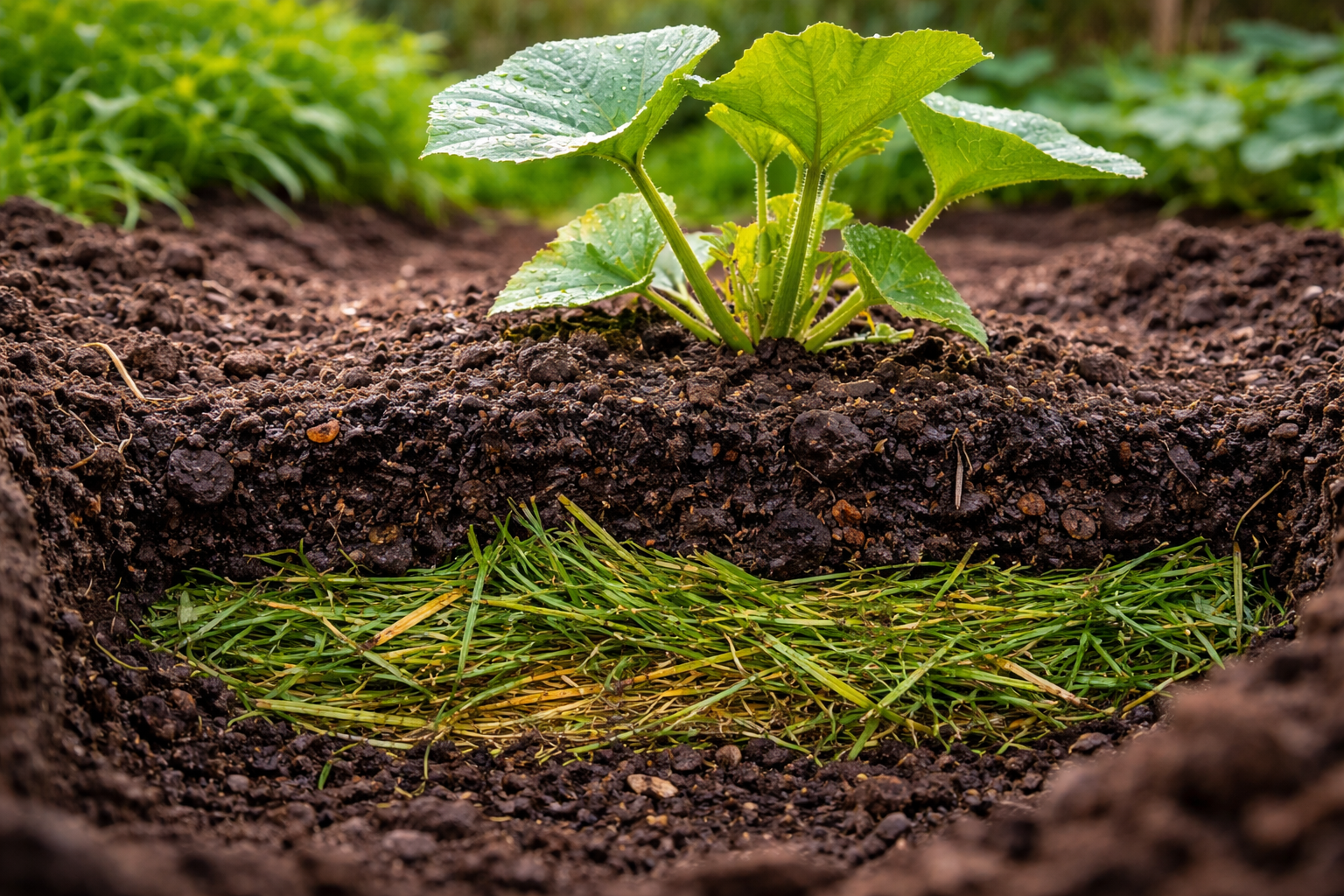 Il segreto principale di un avvio rapido è aggiungere al fondo della buca di impianto erba fresca tagliata che, decomponendosi, agisce come una potente batteria naturale.