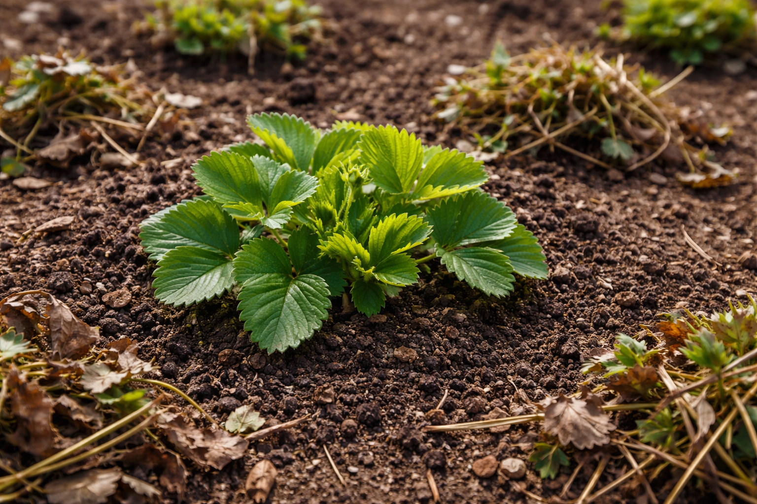 Quando apparato radicale della fragola Dopo che l’apparato radicale delle fragole si è riscaldato a sufficienza sotto i raggi del sole primaverile e ha ricevuto il nutrimento iniziale, il terreno nudo deve essere coperto. Una pacciamatura adeguata trattiene l’umidità preziosa nelle giornate secche e impedisce che i frutti in maturazione vengano a contatto con il terreno umido.