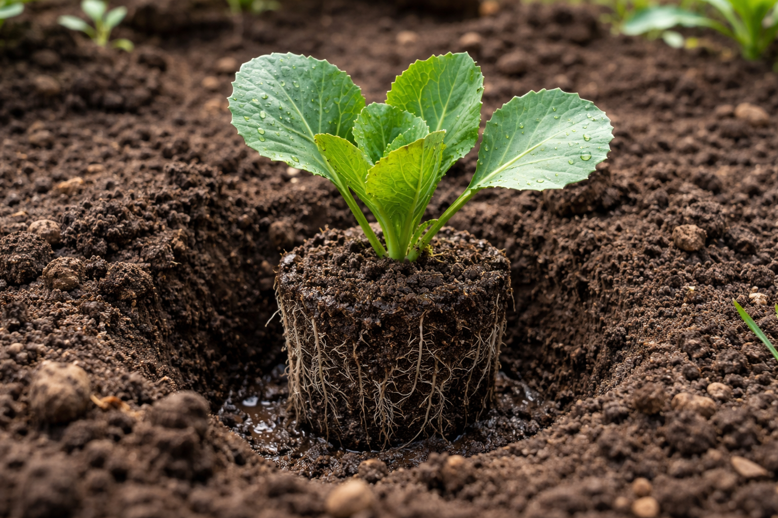 Una sfumatura segreta: le giovani foglie di cavolo evaporano l’umidità più velocemente di quanto possa essere assorbita dalle radici ferite durante il trapianto, quindi nei primi tre giorni le piante hanno bisogno di un’ombreggiatura artificiale con coperture leggere in spunbond o carta.