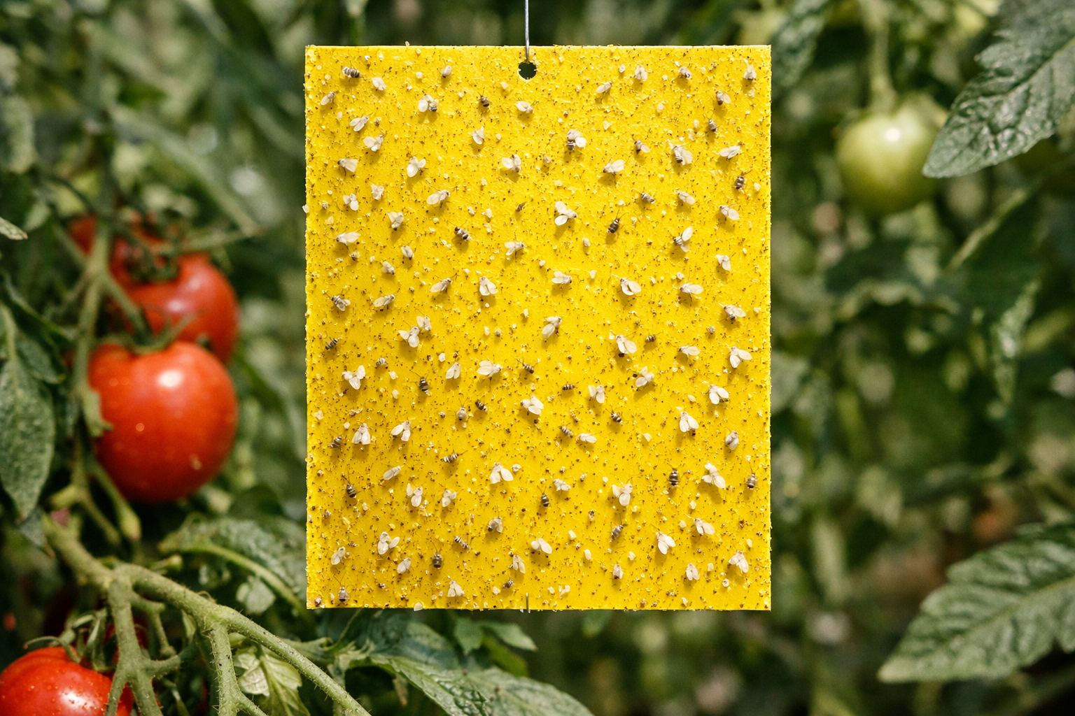 Installare trappole gialle sopra le cime delle piante. La mosca bianca è attratta da questo spettro e aderisce immediatamente alla superficie.