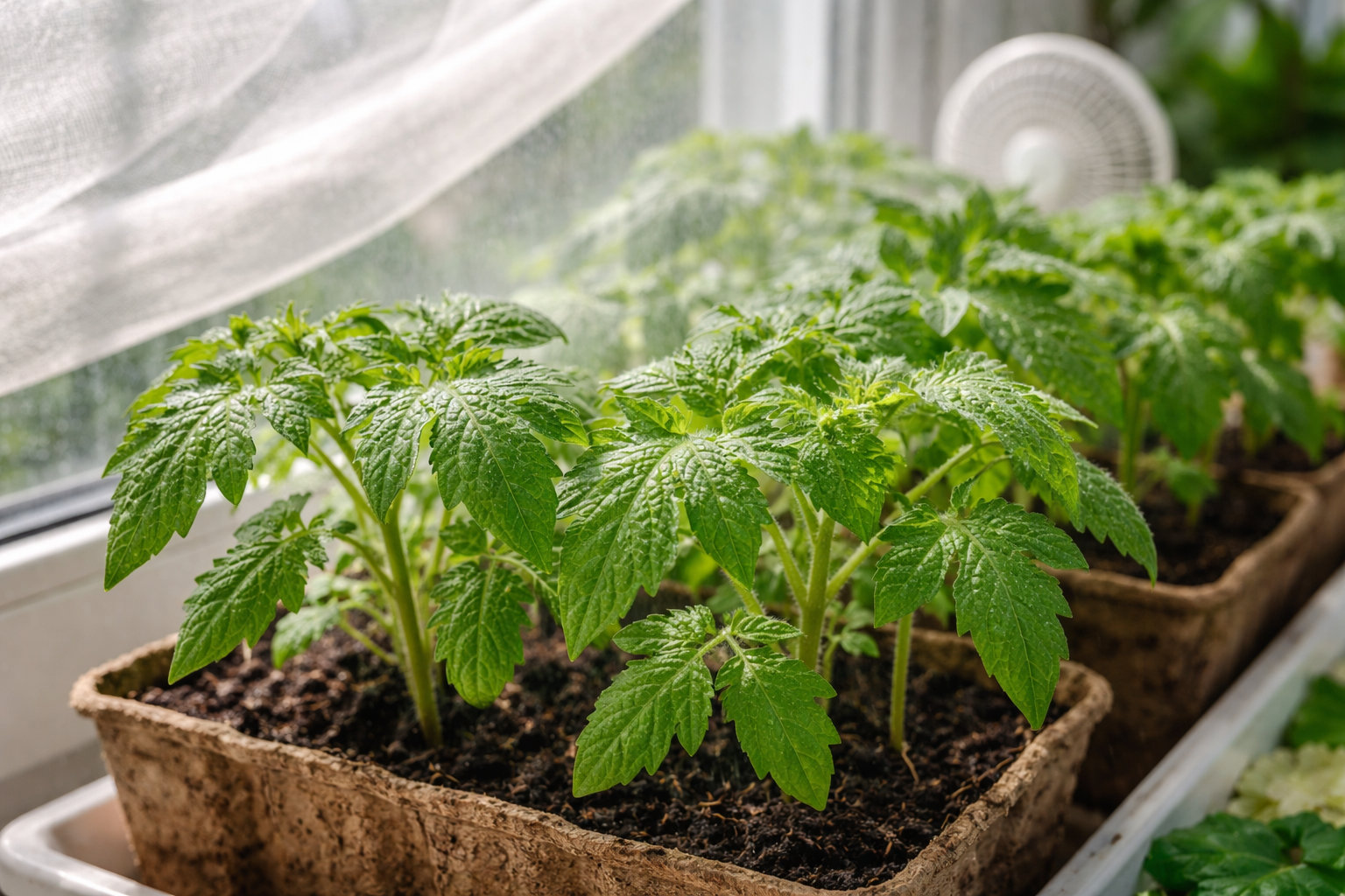 La creazione tempestiva di un microclima fresco e confortevole restituisce ai pomodori vitalità e un aspetto sano. Le piante si adattano rapidamente alle nuove condizioni e continuano a sviluppare un forte apparato radicale per un futuro impianto sicuro in piena terra.
