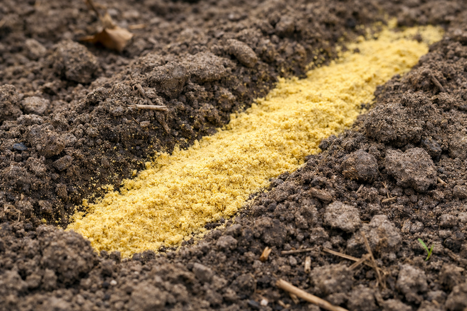La polvere di senape viene versata direttamente nelle buche al momento della semina.