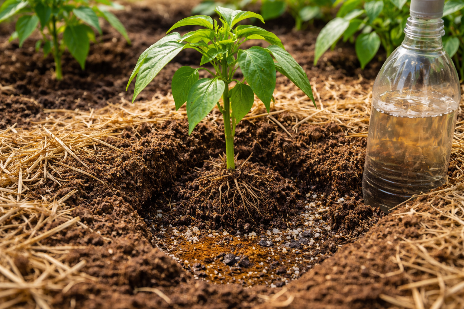 Molti giardinieri danno subito la colpa al sole cocente o alla mancanza di umidità, iniziando a versare acqua in abbondanza sulle piante. Ma la vera causa è molto più profonda. Sistema radicale dei peperoni è estremamente amante del calore e capriccioso. Quando temperatura del terreno al di sotto dei valori ottimali, le radici smettono fisiologicamente di assorbire l’umidità e i micronutrienti di base, anche se il terreno intorno a loro è assolutamente umido.